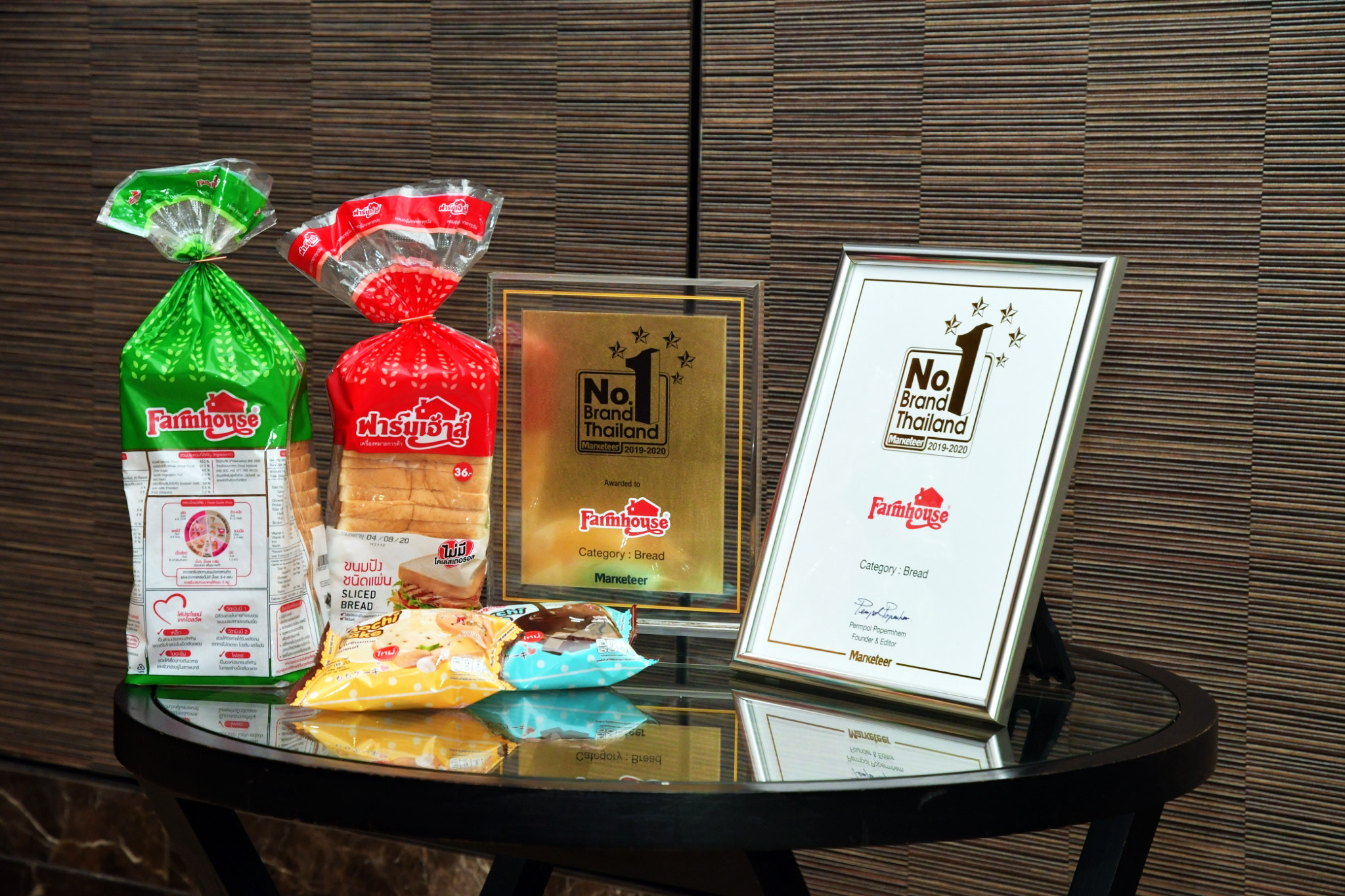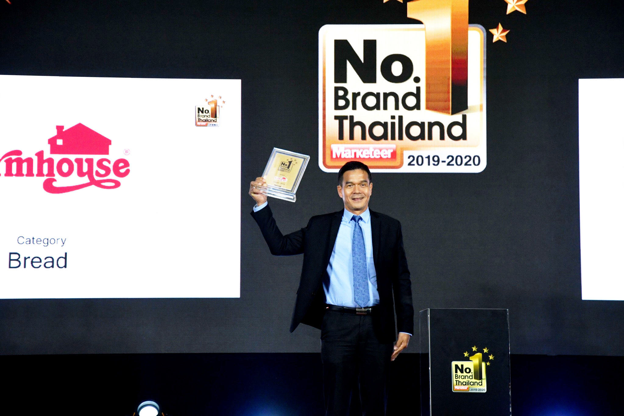 พัน ใจบุญ ผู้จัดการอาวุโสฝ่ายขาย บริษัท เพรซิเดนท์ เบเกอรี่ จำกัด (มหาชน) เปิดเผยว่า “ฟาร์มเฮ้าส์รู้สึกยินดีและภูมิใจที่ได้รับรางวัล Marketeer No.1 Brand Thailand 2019-2020 ในหมวดแบรนด์ขนมปังต่อเนื่องเป็นปีที่ 3 และขอขอบคุณลูกค้าที่ให้การสนับสนุนกันมากว่า 38 ปี ซึ่งฟาร์มเฮ้าส์ได้มุ่งมั่นพัฒนาสินค้าที่สดใหม่ ทันสมัย และมีคุณภาพอย่างต่อเนื่อง เพื่อให้ตอบโจทย์ความต้องการของผู้บริโภคมาโดยตลอด นอกจากนี้เรายังทำการตลาดและโปรโมทสินค้าอย่างต่อเนื่อง เพื่อให้ผู้บริโภคได้รู้จักสินค้าใหม่ตลอดทั้งปี โดยตั้งเป้ายอดขายสินค้าในปี 2563 นี้ ไว้ที่ 7,500 ล้านบาท”